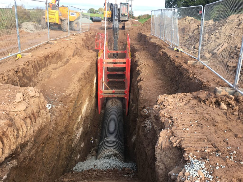 Provision of new overflow structure, 1km of 1050mm pipeline and a River outlet structure.